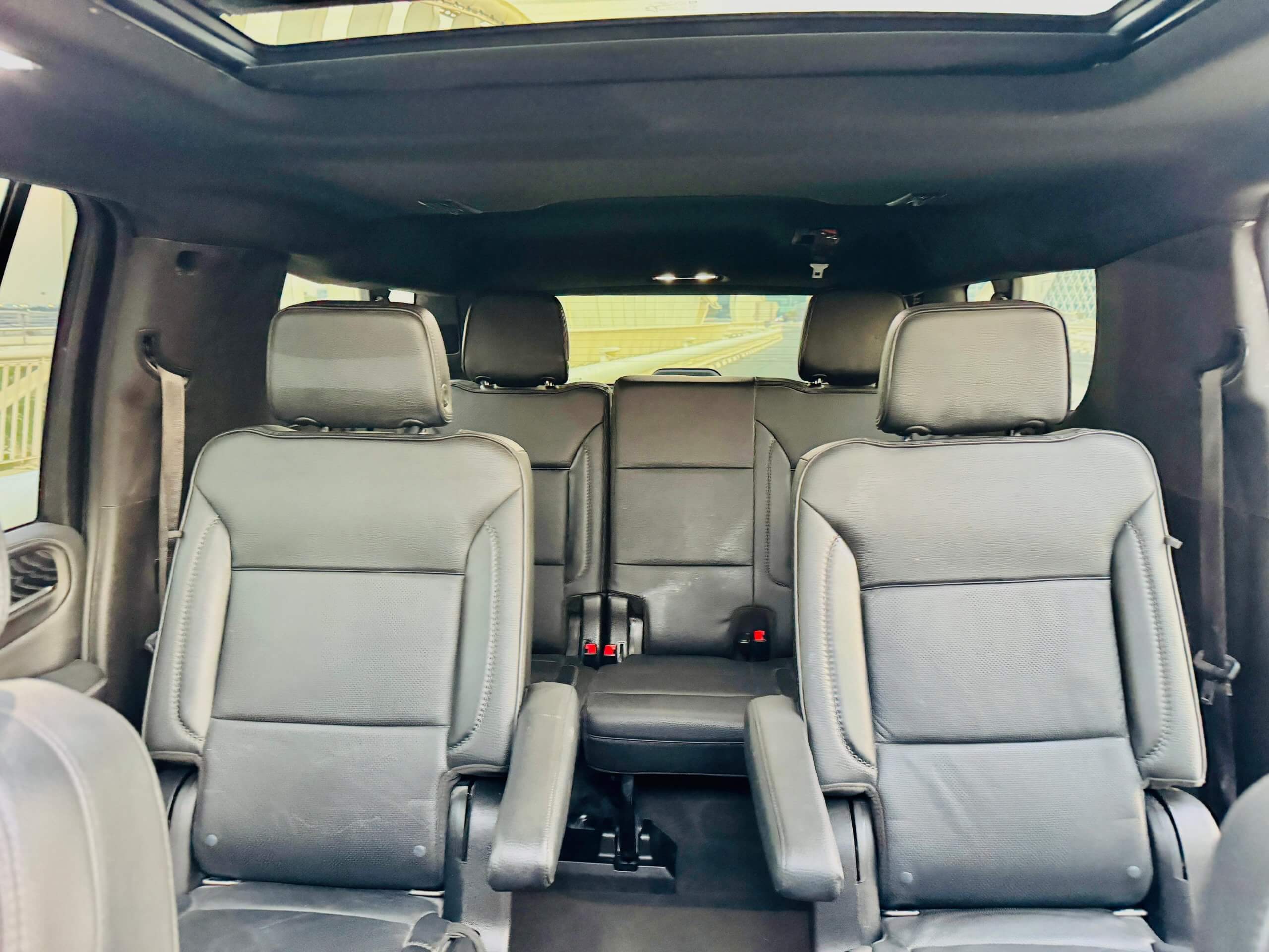 • Seating: Premium black leather seats for ultimate comfort, including 2nd-row captain chairs for enhanced passenger comfort.